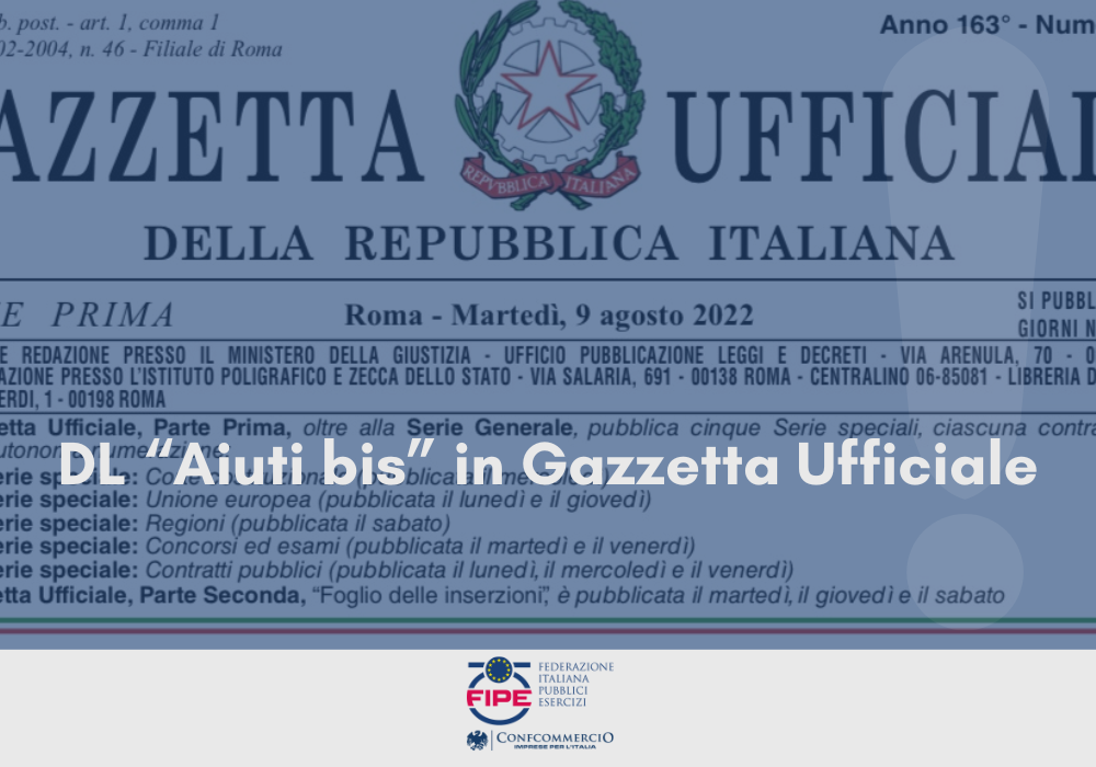 Le aliquote relative agli oneri generali di sistema elettrico applicate anche alle utenze non domestiche in bassa tensione, per altri usi, con potenza disponibile fino a 16,5 kW saranno annullate anche per il IV trimestre 2022 (in merito già news Fipe sul DL n. 80/2022).