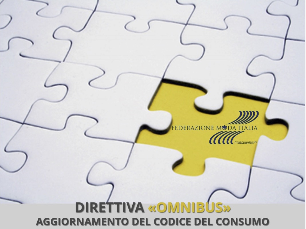 Federazione Moda Italia-Confcommercio ha realizzato unasintesi delle possibili ricadute sul settore MODA utile anche a comprendere come cambieranno le regole del Codice del Consumo (D.Lgs. 206/2005) in particolare sulle novità in tema di trasparenza degli annunci delle riduzioni dei prezzi, pratiche commerciali scorrette, rafforzamento dellesanzioni, clausole vessatorie, adeguamento informazioni, contrattualistica e documentazione per attività di e-commerce.