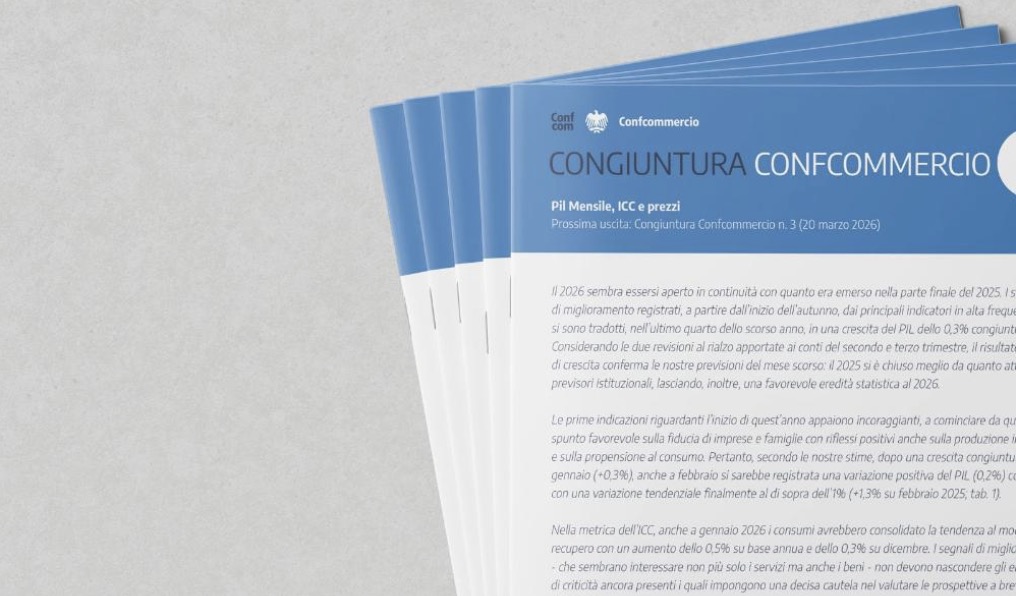 Il 2026 si apre in continuità con il graduale rafforzamento emerso nella seconda parte del 2025. Secondo i dati della Congiuntura Confcommercio (guarda il link al documento integrale in pdf) Nel quarto trimestre dello scorso anno il PIL è cresciuto dello 0,3% congiunturale; le revisioni al rialzo dei trimestri precedenti hanno consentito di chiudere il 2025 meglio delle attese, lasciando al nuovo anno una favorevole eredità statistica.