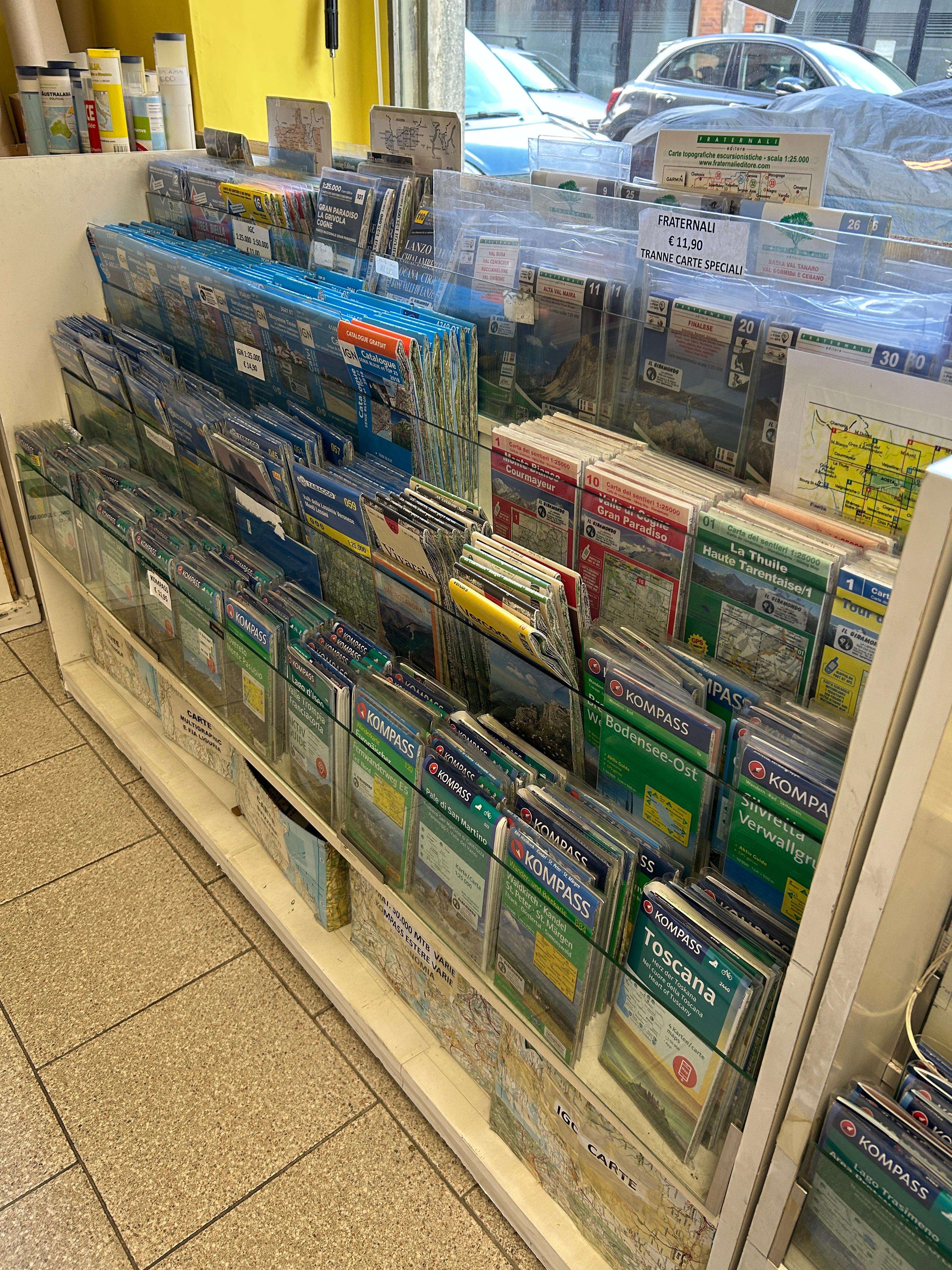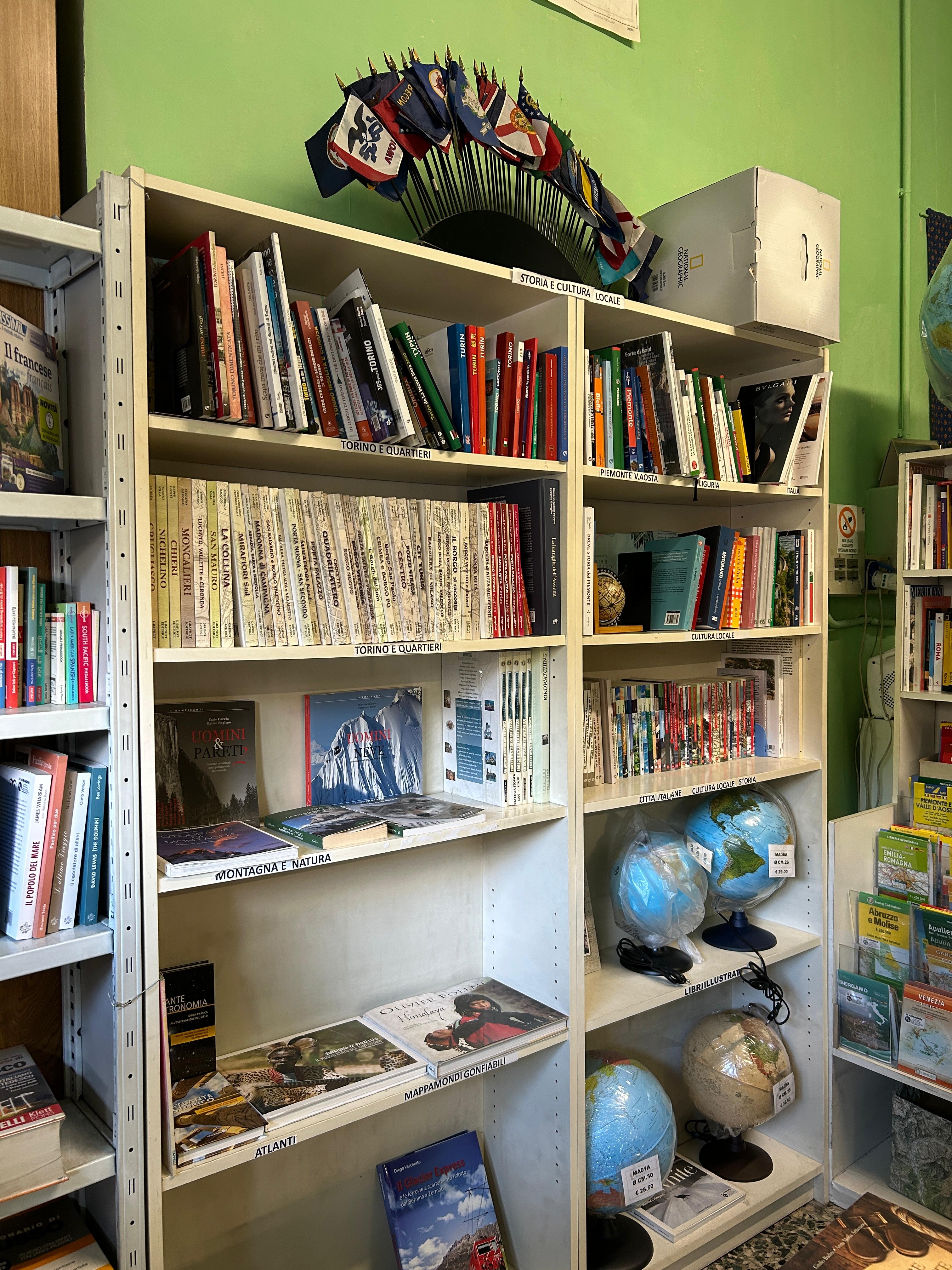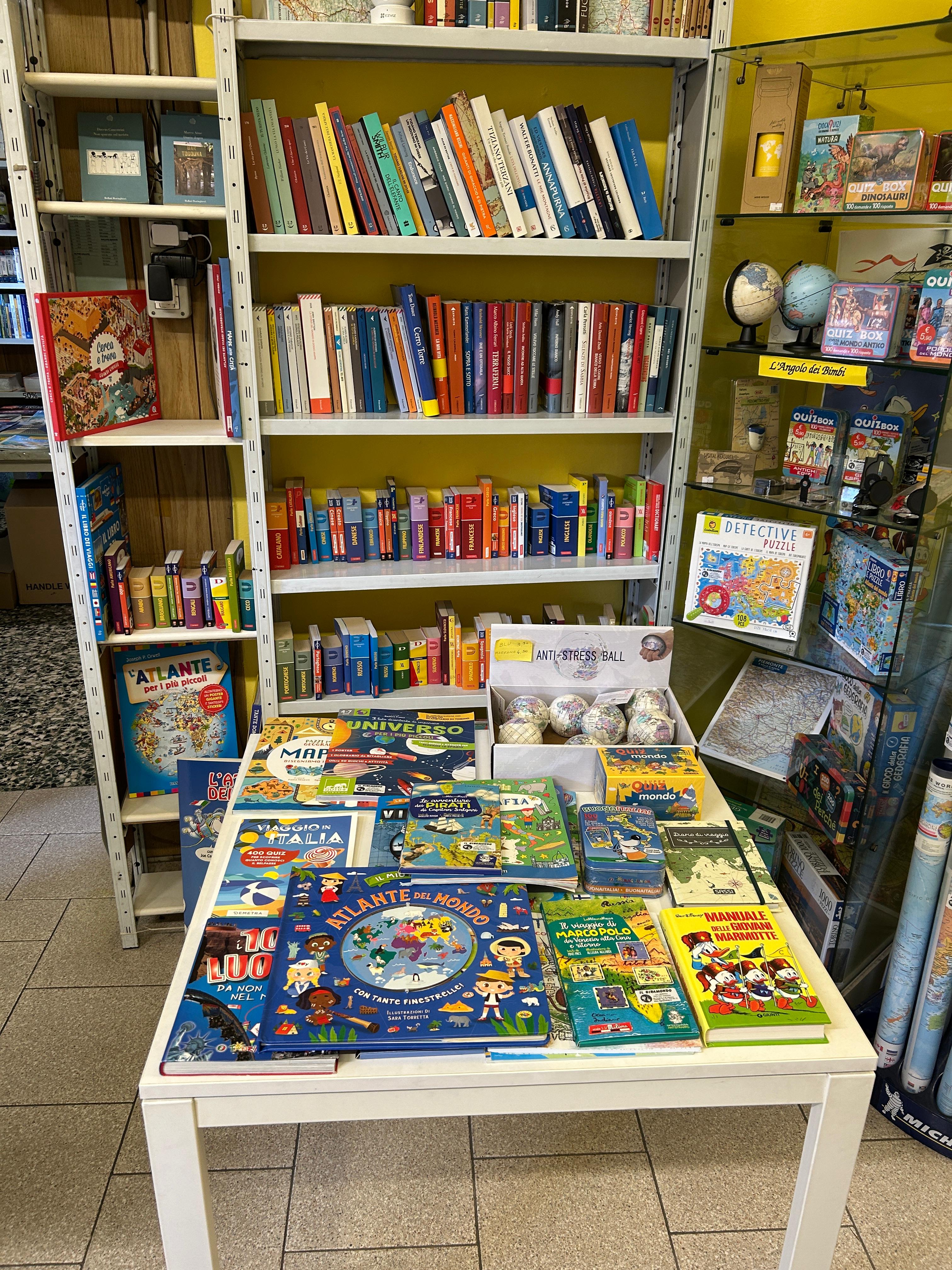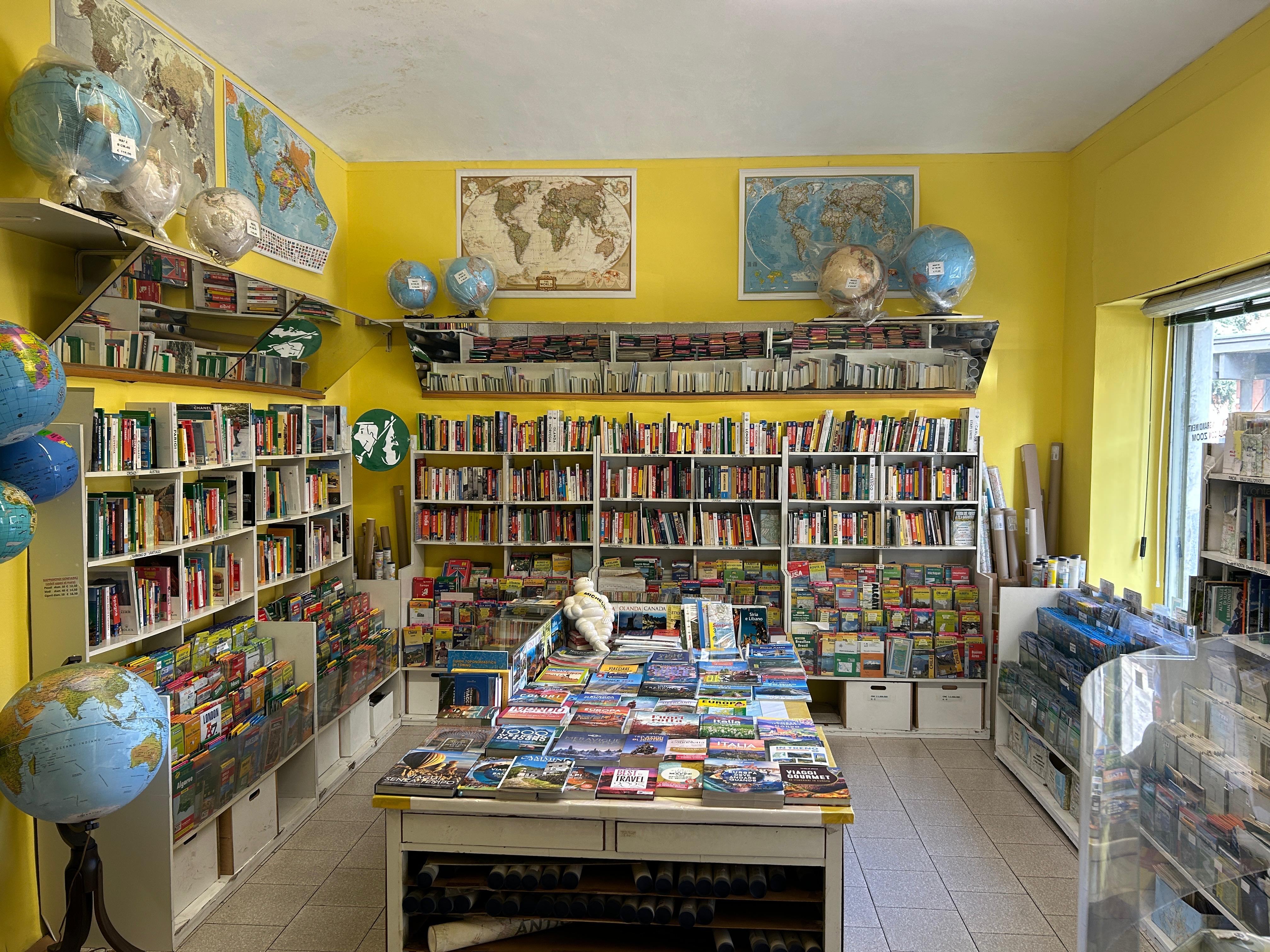 Accanto alle guide turistiche, le carte geografiche diventano il cuore pulsante del negozio: ordinate con cura, spaziano dalle mappe tradizionali a quelle in rilievo, dalle più comuni a quelle quasi introvabili. Ci sono carte per le escursioni sulle montagne italiane, atlanti stradali di Paesi lontani, fino a mappamondi di ogni dimensione che invitano a viaggiare con lo sguardo. Luogo per sognatori e impenitenti viaggiatori, o per chi soltanto desidera una straordinaria idea regalo, entrare nella libreria Il Giramondo significa avere il mondo intero a portata di mano, pronto per essere esplorato.
