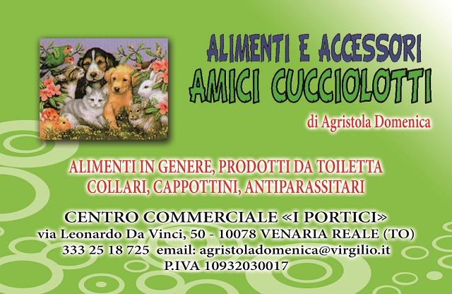Alimenti per animali, prodotti da toeletta, collari, cappottini, antiparassitari, accessori vari, parafarmacia, diete